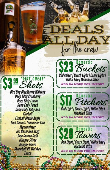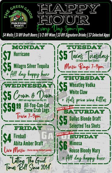 Food and drink specials during all college and NFL football games!
